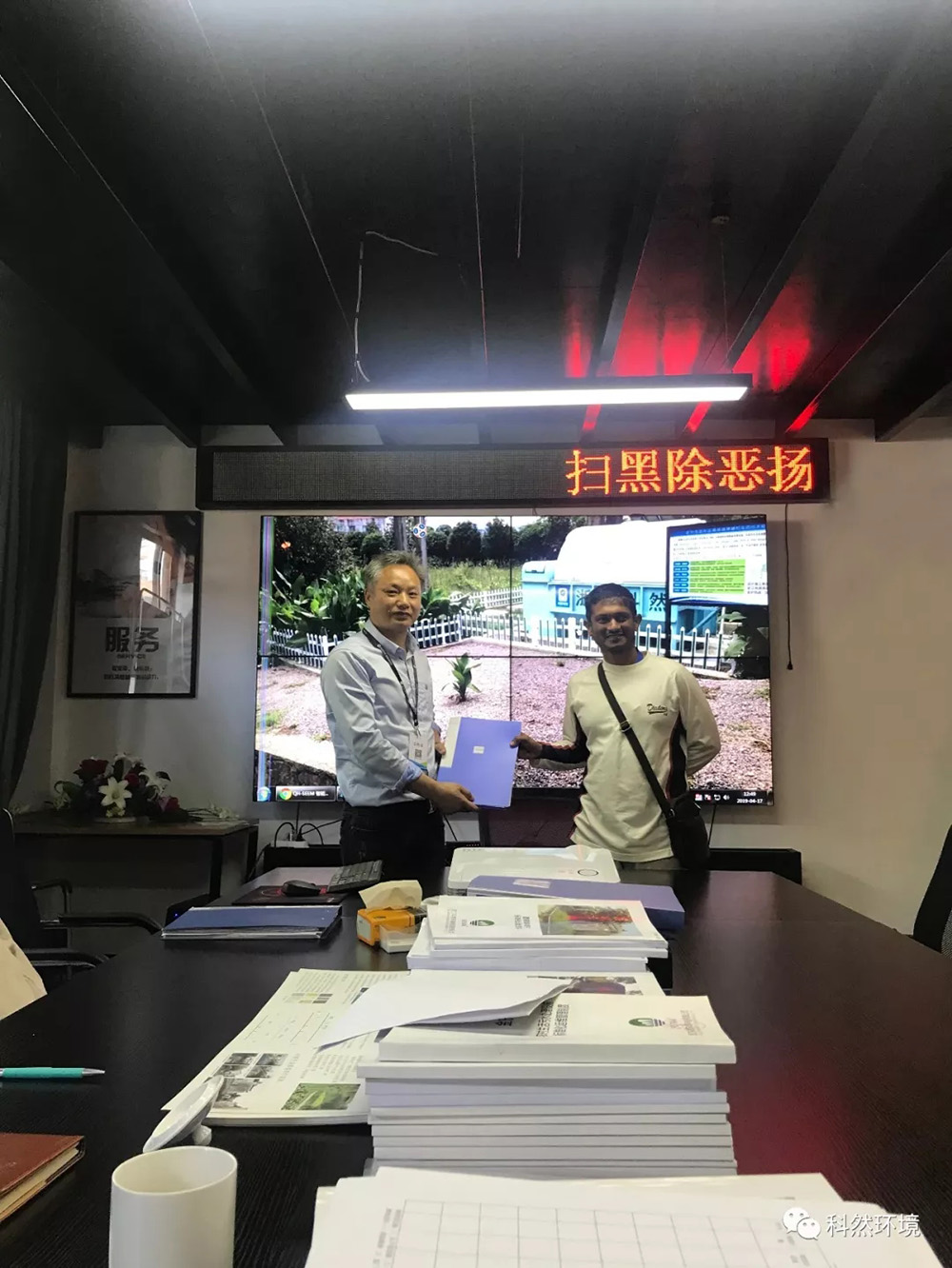 人間最美四月天,我們迎來了一位春風十足的客人。 近日在第20屆中國環博會期間,毛里求斯的專家Yavinash Patny蒞臨浙江科然環境科技股份有限公司參觀考察, 董事長黃利林、副總翁劍設、技術負責人王東等接待陪同。