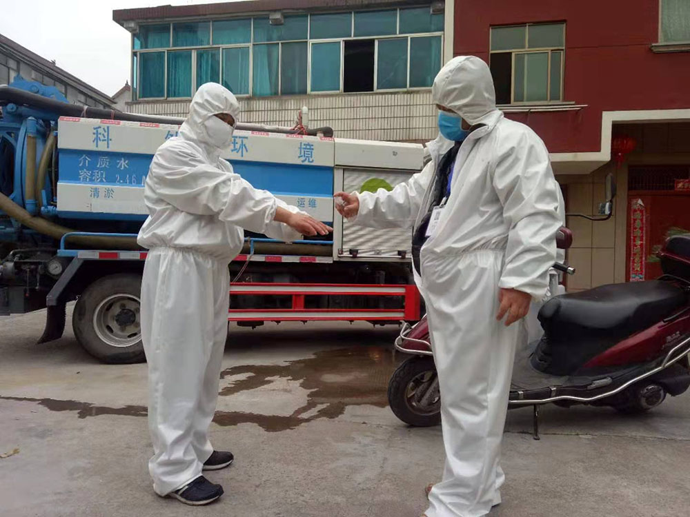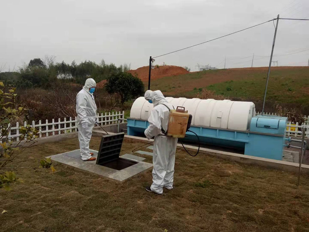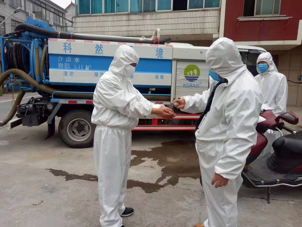 | 科然環境運維組員工為號召國家防控疫情政策,對各個終端和管網的污水池進行全面的清掏、消殺工作。 |
